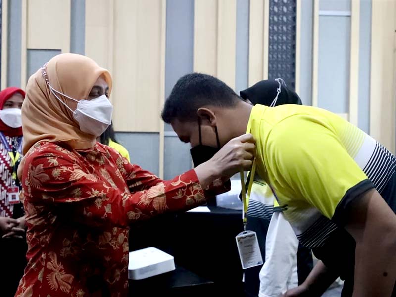 Penasihat Dharma Wanita Persatuan (DWP) Kementerian Pemuda dan Olahraga Republik Indonesia (Kemenpora RI), Nadiah Zainudin Amali memberikan motivasi saat membuka pelatihan kemandirian dan pembentukan karakter pemuda termaginalkan tingkat nasional tahun 2022 di Swiss-Belresort Dago Heritage, Bandung, Jawa Barat, Selasa (22/3). Dalam kesempatan ini, Penasihat DWP Kemenpora Nadiah Zainudin Amali berharap para peserta tetap semangat dalam menatap masa depannya. Pelatihan ini juga diharap dapat menggali potensi diri.