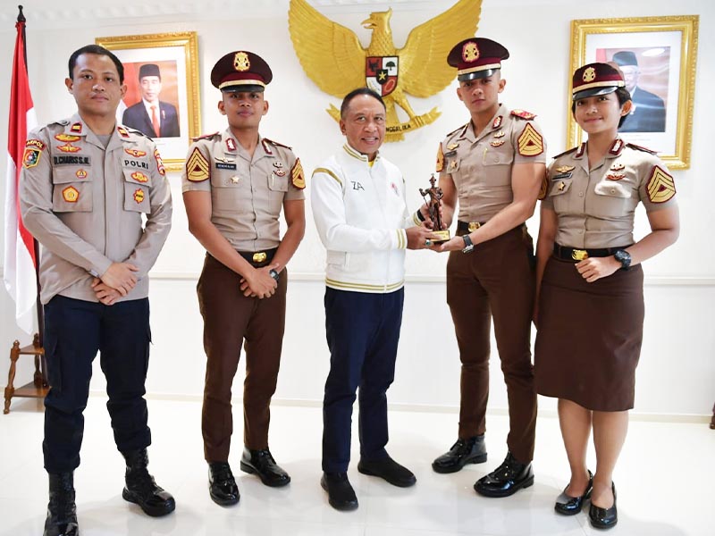 Menteri Pemuda dan Olahraga Republik Indonesia (Menpora RI) Zainudin Amali menerima audiensi Dankitar/Paping Pekan Olahraga dan Seni Mahasiswa, Pelajar, dan Taruna Akademi Kepolisian(Porsimaptar Akpol) ke-XXII tahun 2022, Iptu Dimas Charis Suryo Nugroho di Kantor Kemenpora Senayan, Jakarta, Senin (19/9).