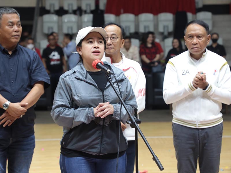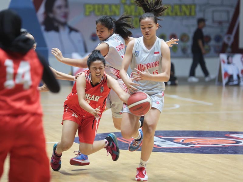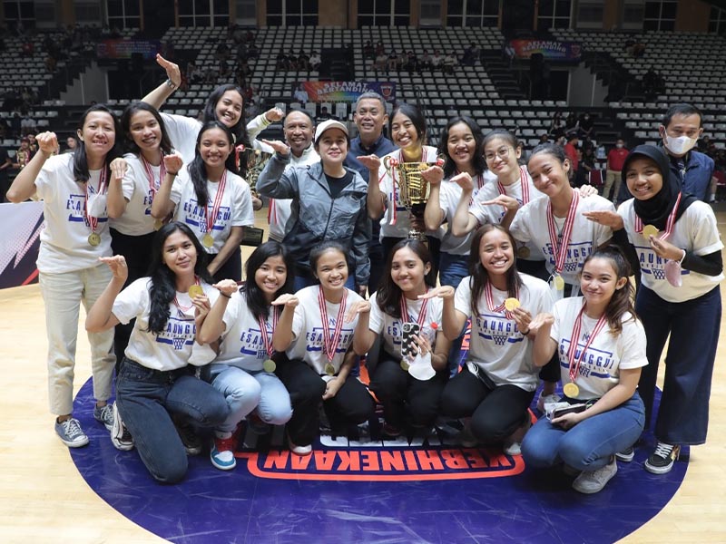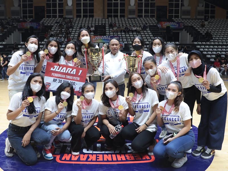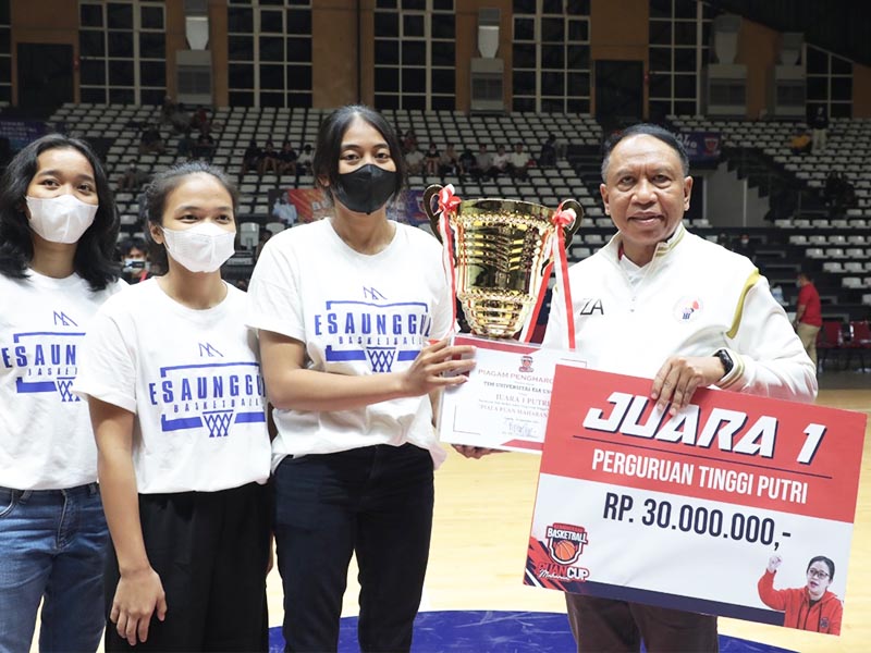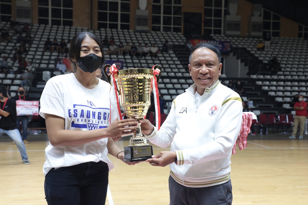 Menpora Amali Kalungkan Medali dan Serahkan Piala kepada Juara Tim Puteri Turnamen Bola Basket Piala Puan Maharani 2022