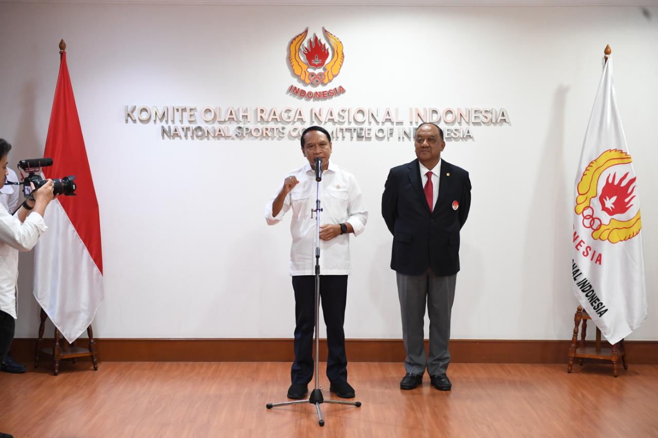 Menteri Pemuda dan Olahraga (Menpora) Zainudin Amali menghadiri pengukuhan dan pelantikan Pengurus Besar (PB) Persatuan Squash Indonesia (PSI) di Gedung Komite Olahraga Nasional Indonesia (KONI), Senayan, Jakarta, Senin (20/1). Pada kesempatan ini, Menpora ingin squash bisa semakin populer di Indonesia. (foto:satria/kemenpora.go.id)