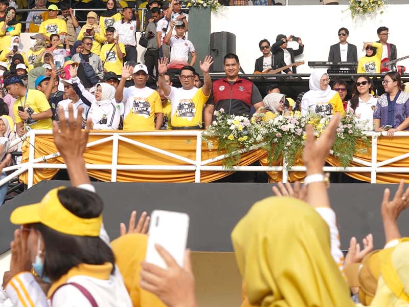 Menteri Pemuda dan Olahraga Repbulik Indonesia (Menpora RI) Dito Ariotedjo bersama Gubernur Jawa Barat Ridwan Kamil, dan Bupati Purwakarta Anne Ratna Mustika hari Jumat (16/6) pagi membuka Jambore Olahraga Masyarakat Purwakarta 2023 di Stadion Purnawarman, Puwakarta.