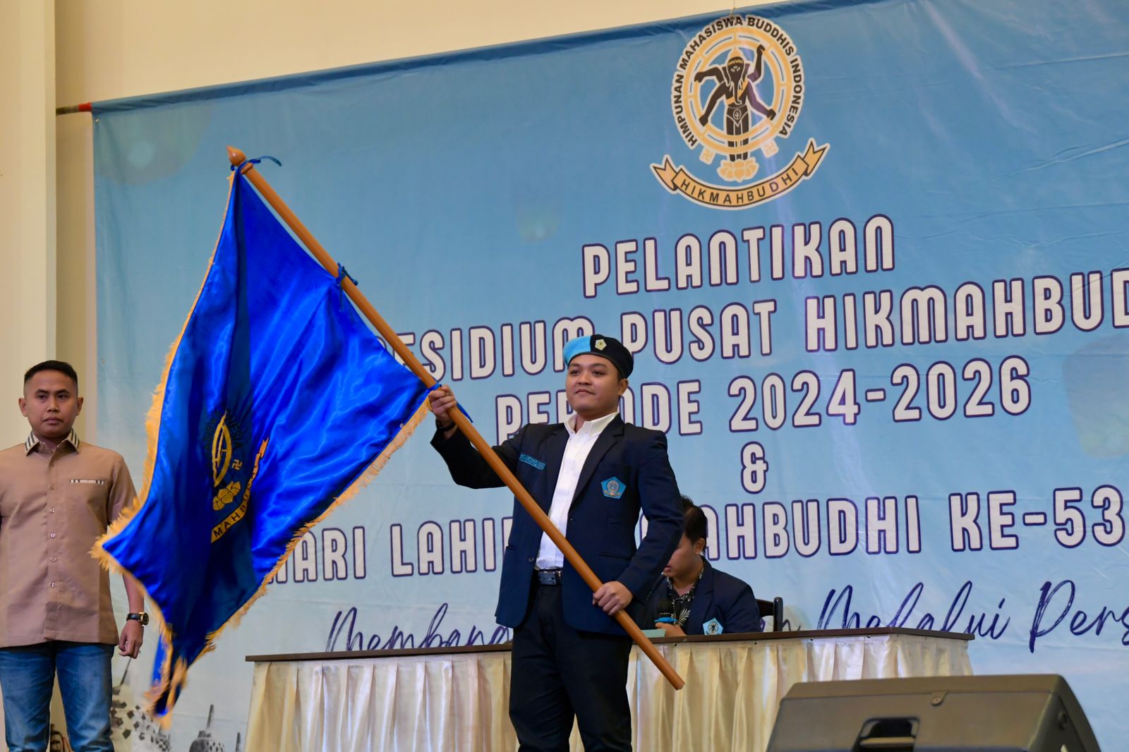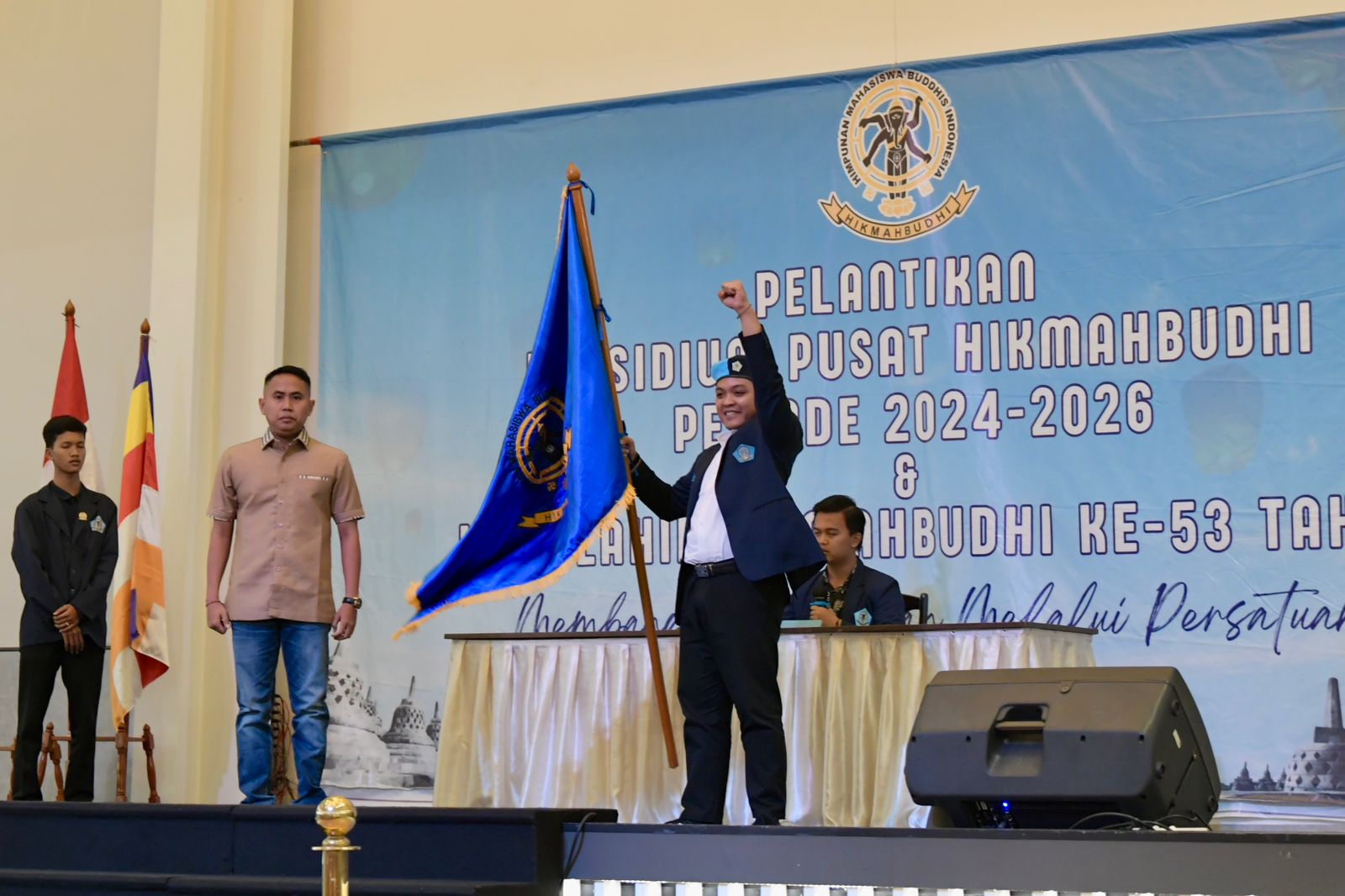 Menpora RI Dito Ariotedjo menghadiri Pelantikan Presidium Pusat Himpunan Mahasiswa Buddhis Indonesia (PP Hikmahbudhi) Periode 2024-2026 dan Perayaan Hari Lahir Hikmahbudhi ke-53 di Restoran Ekaria Gajah Mada Jakarta Pusat, Jumat (14/6) malam.