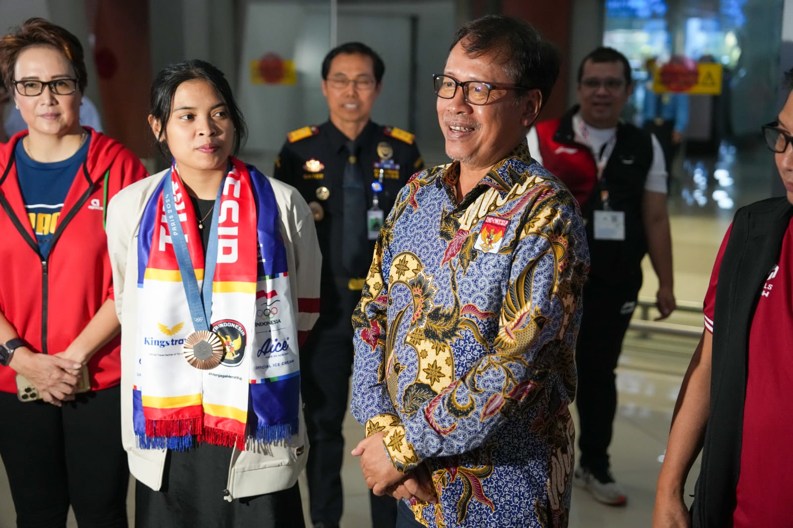 Kemenpora Sambut Kedatangan Gregoria Mariska di Bandara Soekarno-Hatta
