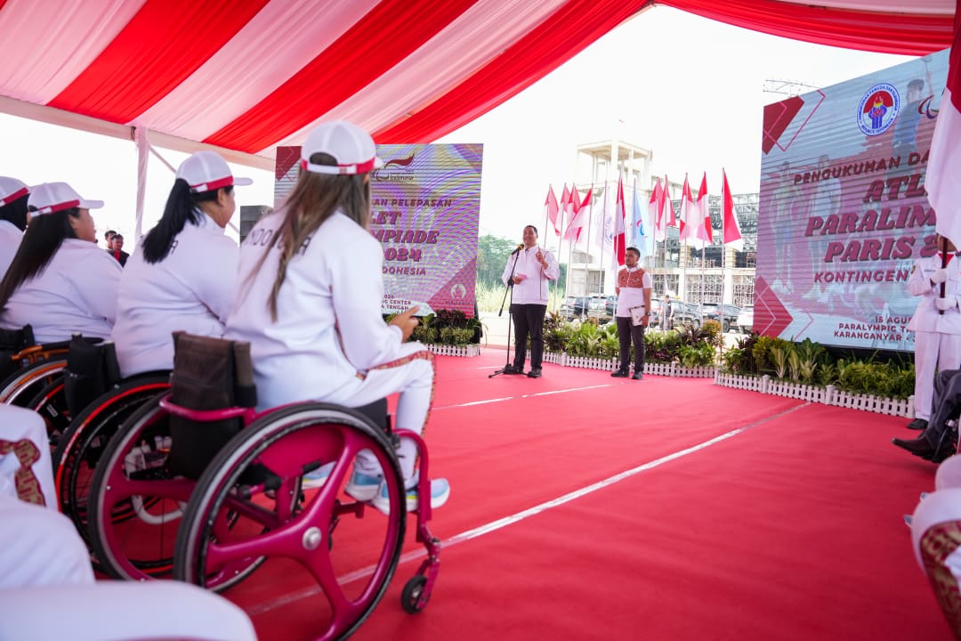 Menteri Pemuda dan Olahraga Republik Indonesia (Menpora RI) Dito Ariotedjo, secara resmi mengukuhkan dan melepas Kontingen Indonesia ke Paralimpiade 2024 Paris di Paralympic Training Center Karanganyar, Jawa Tengah, Kamis (15/8) siang.