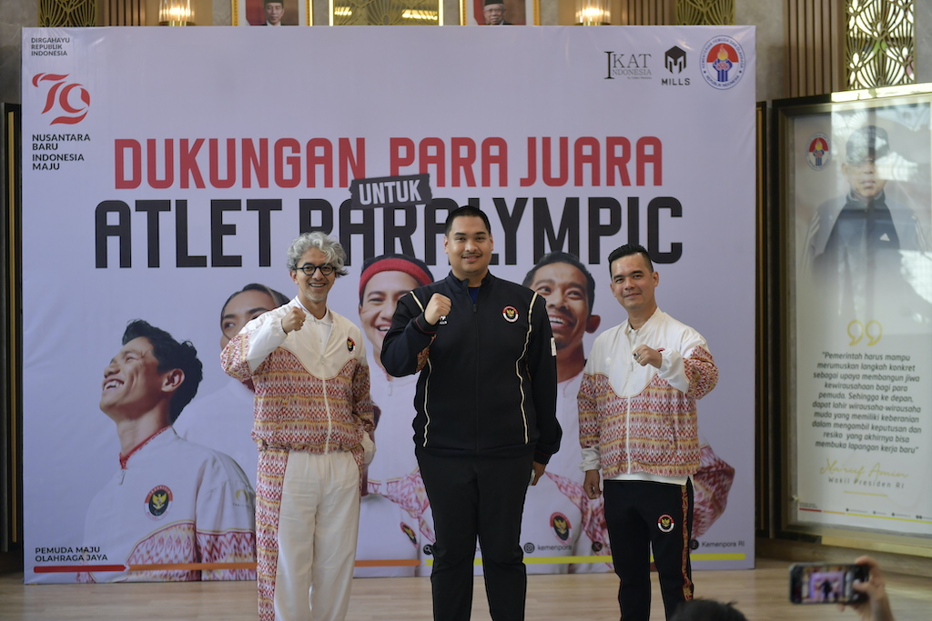 Menteri Pemuda dan Olahraga Republik Indonesia (Menpora RI) Dito Ariotedjo menyampaikan apresiasi dan terima kasih kepada desainer Indonesia Didiet Maulana yang berkolaborasi dengan Mills untuk membuat desain kostum kontingen Indonesia yang akan berjuang di Paralimpiade 2024 Paris.