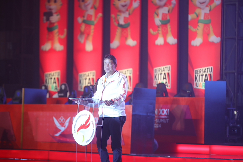 Menteri Pemuda dan Olahraga Republik Indonesia (Menpora RI) Dito Ariotedjo, secara resmi membuka cabang olahraga esport yang perdana menjadi cabor resmi PON XXI/2024 Aceh-Sumut di Medan International Convention Center (MICC) Kota Medan, Sumatera Utara, Jumat (13/9) malam.