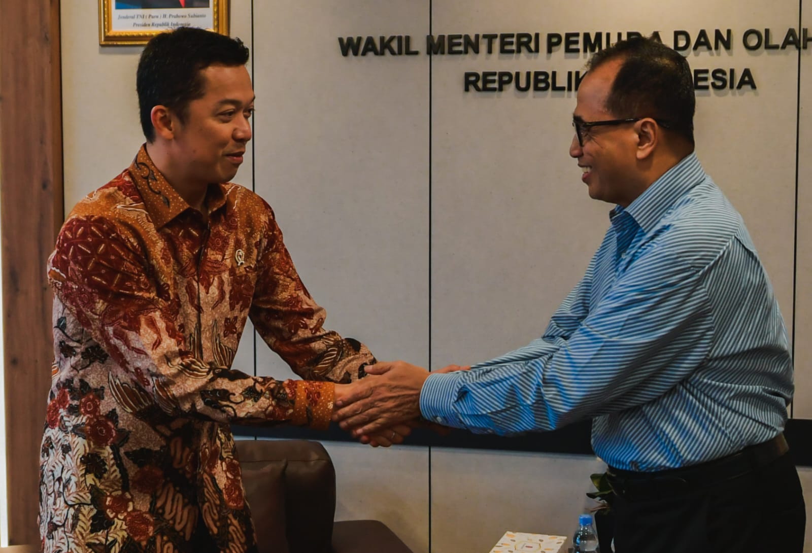 Wamenpora Taufik Hidayat menerima kunjungan Ketua Pengurus Yayasan Pembangunan Jaya Raya, Budi Karya Sumadi