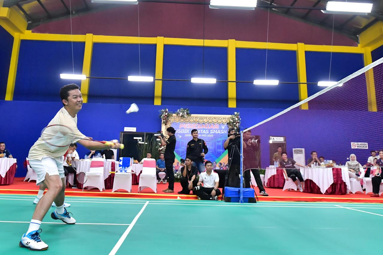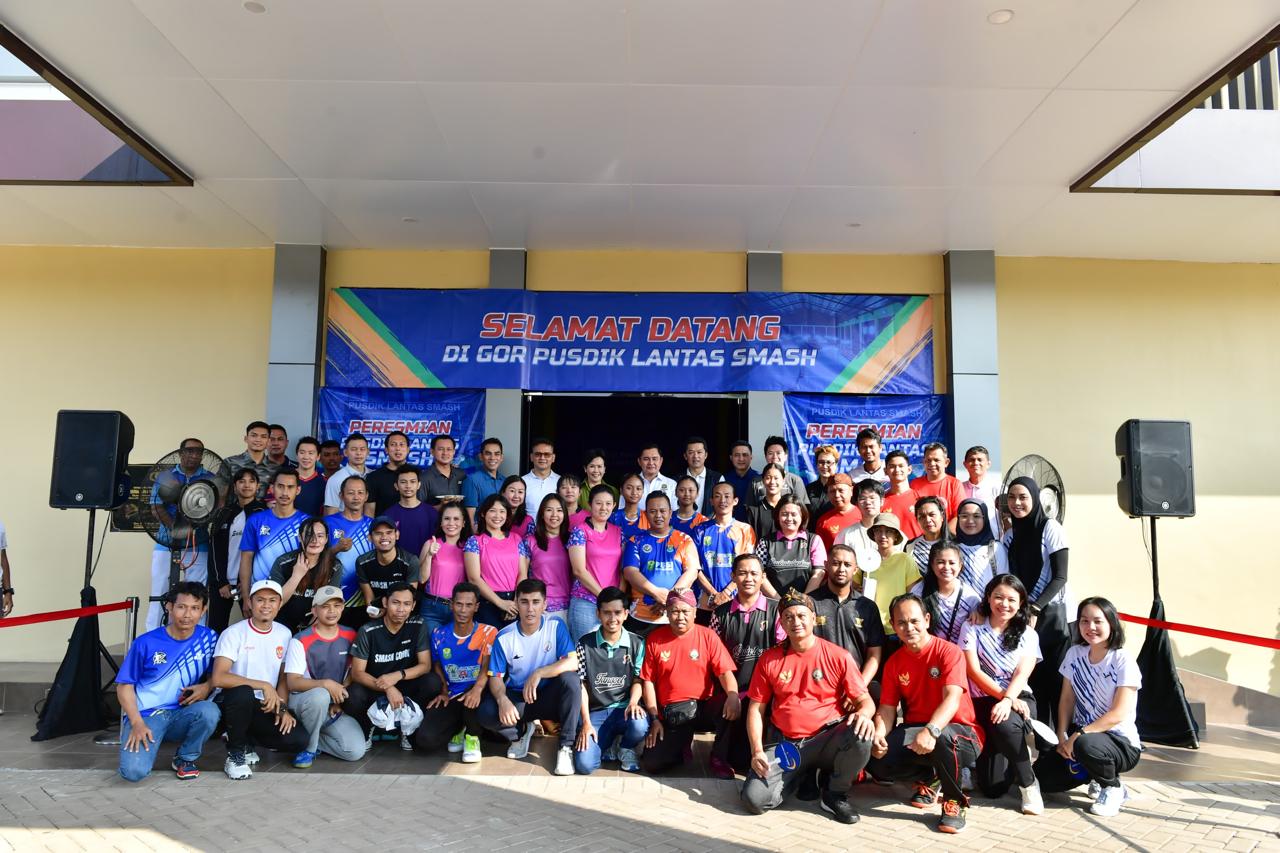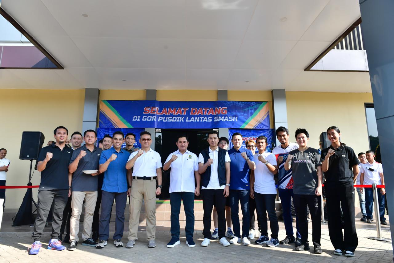Wakil Menteri Pemuda dan Olahraga Republik Indonesia (Wamenpora RI) Taufik Hidayat bersama Ketua Umum Persatuan Bulutangkis Seluruh Indonesia (PBSI) Fadil Imran meresmikan Gedung Olahraga (GOR) Bulutangkis Pusdik Lantas Smash yang berlokasi di Pusat Pendidikan Lalu Lintas (Pusdik Lantas), Serpong, Tangerang Selatan, pada Sabtu (31/5).