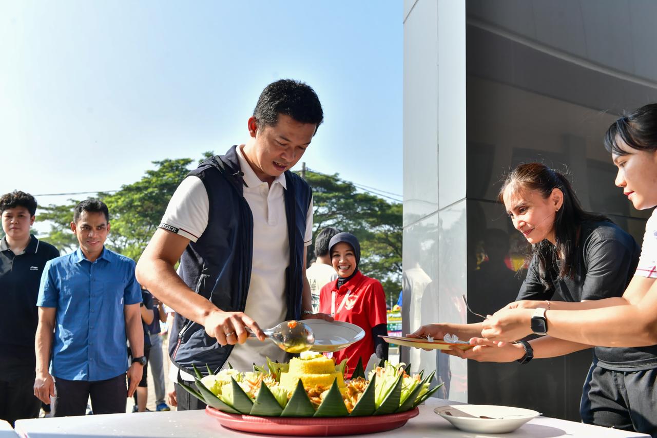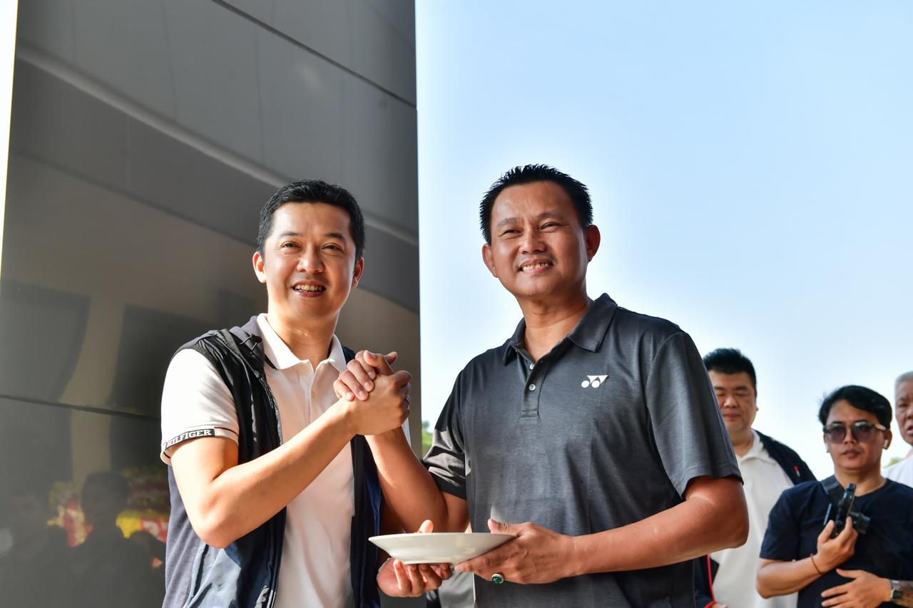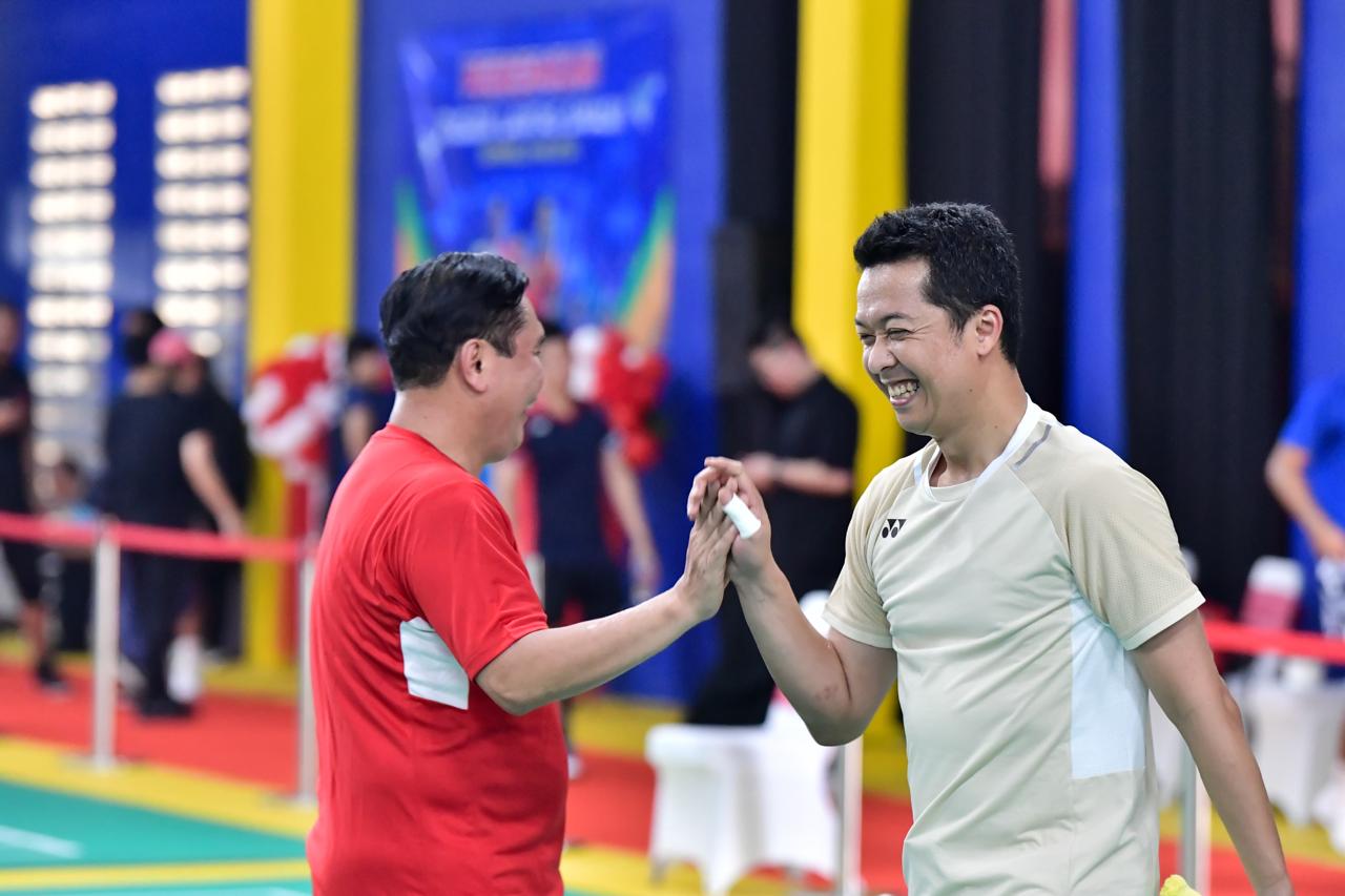 Wakil Menteri Pemuda dan Olahraga Republik Indonesia (Wamenpora RI) Taufik Hidayat bersama Ketua Umum Persatuan Bulutangkis Seluruh Indonesia (PBSI) Fadil Imran meresmikan Gedung Olahraga (GOR) Bulutangkis Pusdik Lantas Smash yang berlokasi di Pusat Pendidikan Lalu Lintas (Pusdik Lantas), Serpong, Tangerang Selatan, pada Sabtu (31/5).