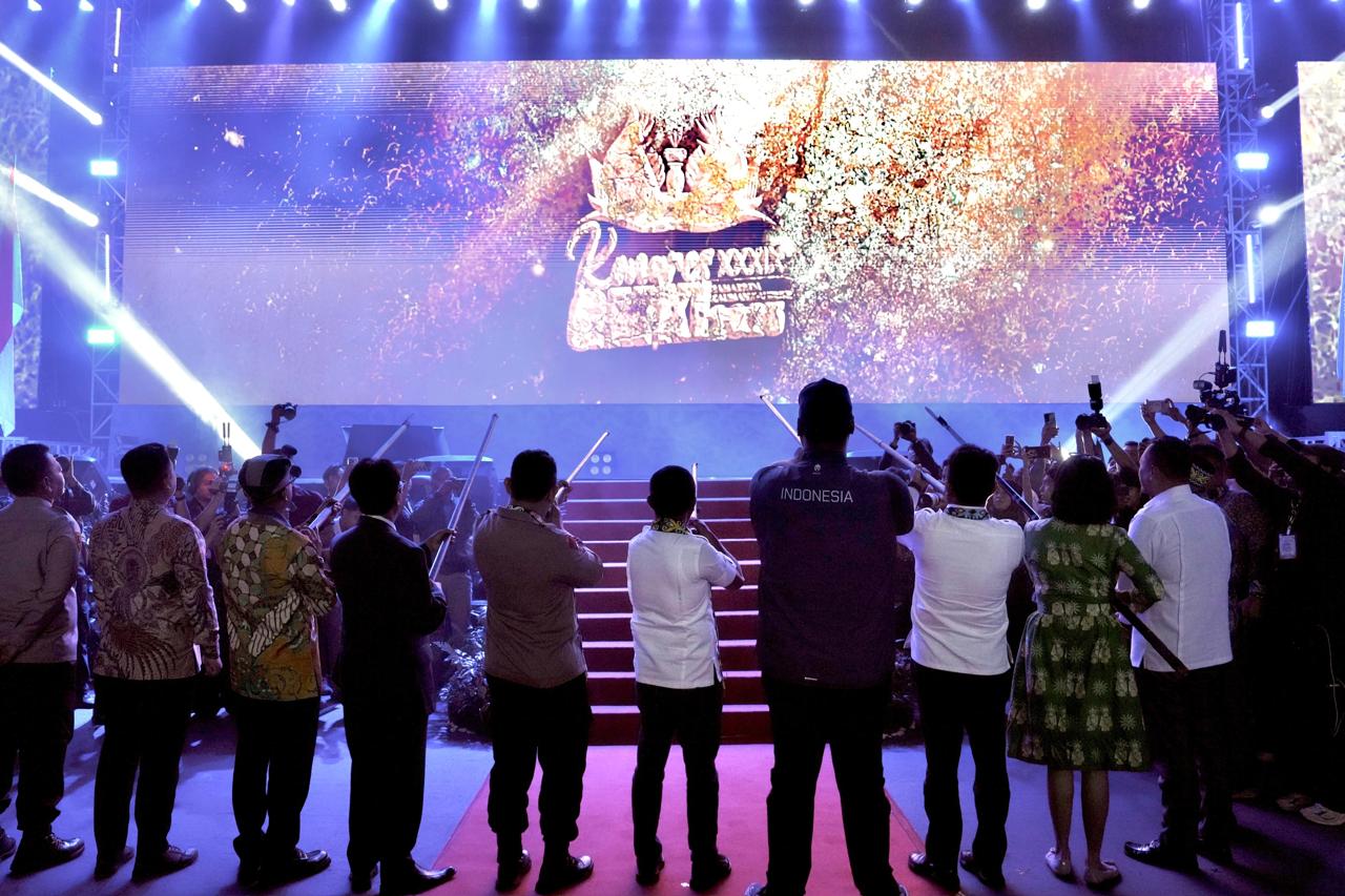 Hadir bersama Menteri Energi dan Sumber Daya Mineral (ESDM) RI Bahlil Lahadalia, Kapolri Komjen Polisi Listyo Sigit Prabowo, Gubernur Kaltim Rudy Mas'ud dan jajaran pejabat lainnya, Menpora Dito turut melakukan proses penyumpitan penanda dibukanya kongres.