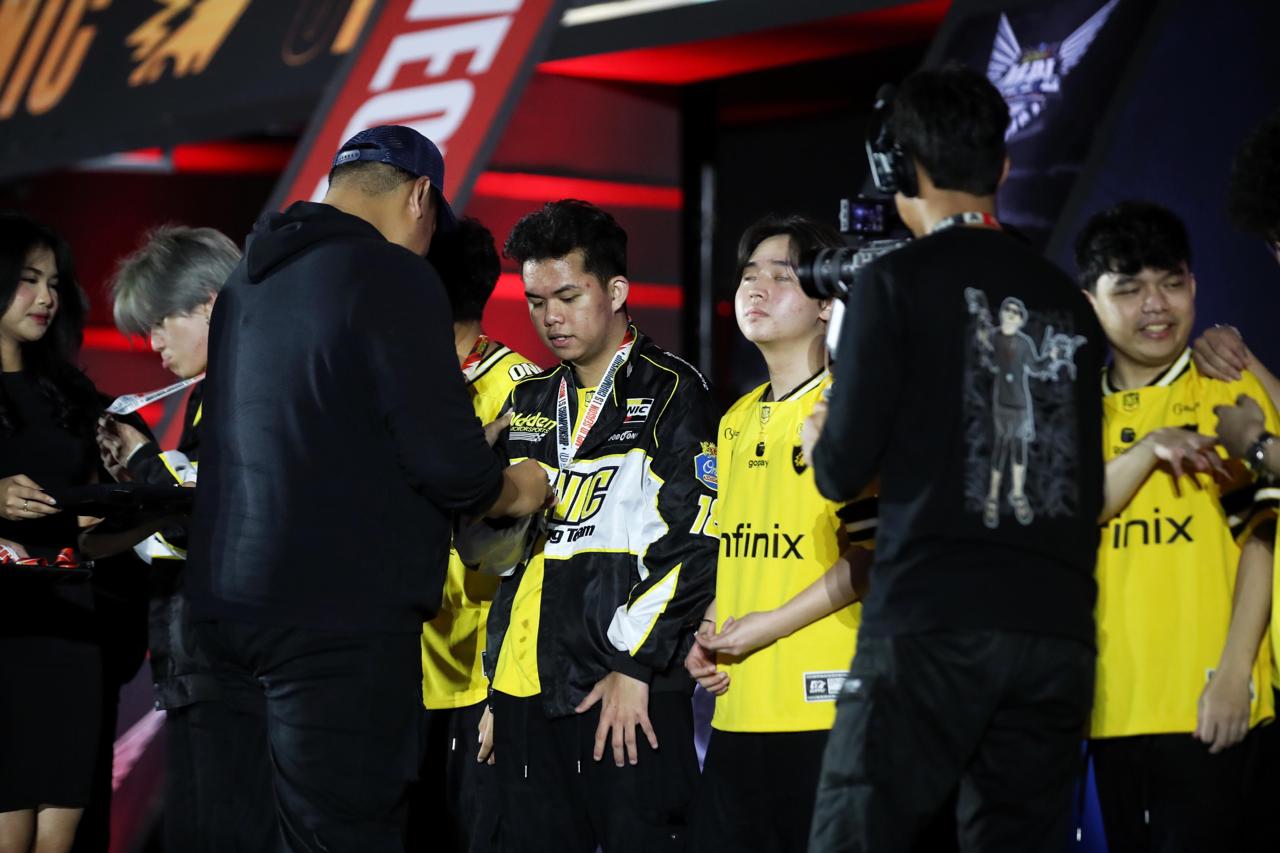 Menteri Pemuda dan Olahraga Republik Indonesia (Menpora RI) Dito Ariotedjo memberikan selamat atas keberhasilan Onic Esports yang menjuarai Mobile Legends Professional League Indonesia (MPL ID) Season 15 di Jakarta International Velodrome, Minggu (15/6).
