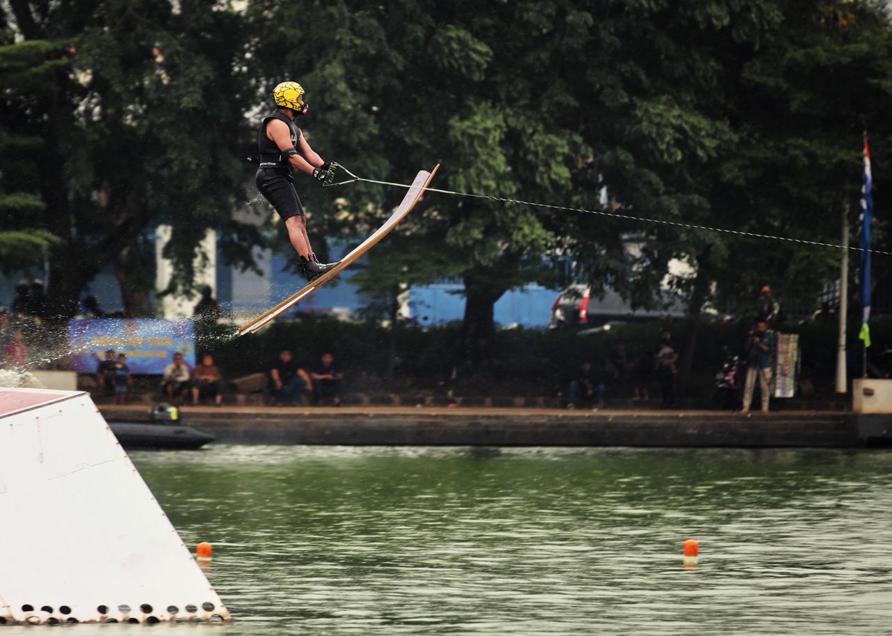 Menteri Pemuda dan Olahraga Republik Indonesia (Menpora RI) Dito Ariotedjo, menghadiri sekaligus mengalungkan medali pada pelaksanaan final jumping putra dan putri Ski Air Kasal Cup Water Sport 2025 di Danau Sunter, Kec. Tanjung Priuk, Jakarta Utara, Minggu (29/6) pagi.
