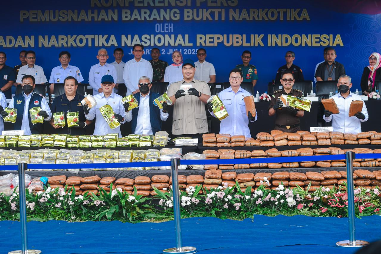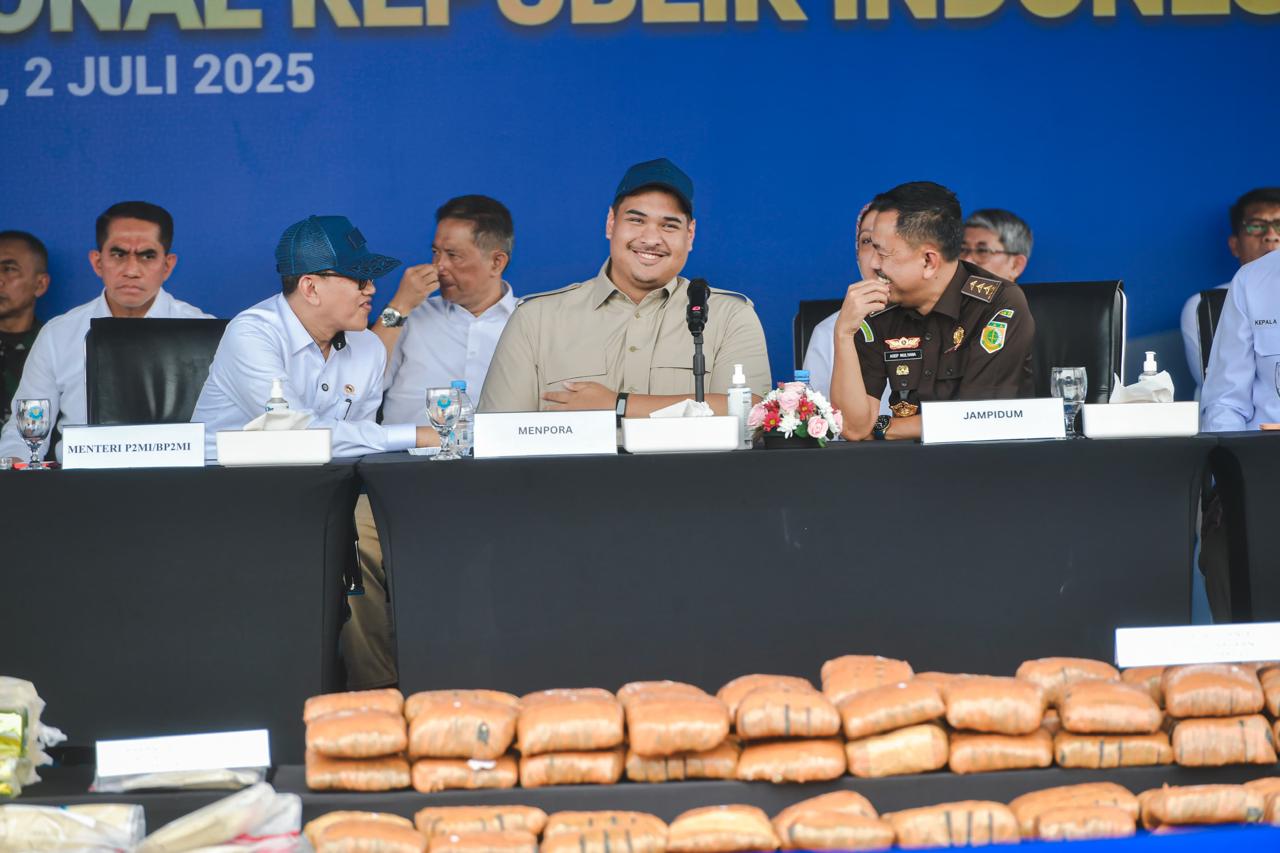 Dukungan tersebut ditunjukkan dengan kehadiran Menteri Pemuda dan Olahraga (Menpora) Dito Ariotedjo, bersama Deputi Pelayanan Kepemudaan, Yohan dan Staf Khusus Menpora Bidang Hukum dan Kepatuhan Tata Kelola, Alvin Saptamandra pada acara pemusnahan Barang Bukti Narkotika yang diselengggarakan oleh BNN di Kampung Boncos, Lapangan Parkir PT Djarum, Jakarta, Rabu (2/7) pagi.