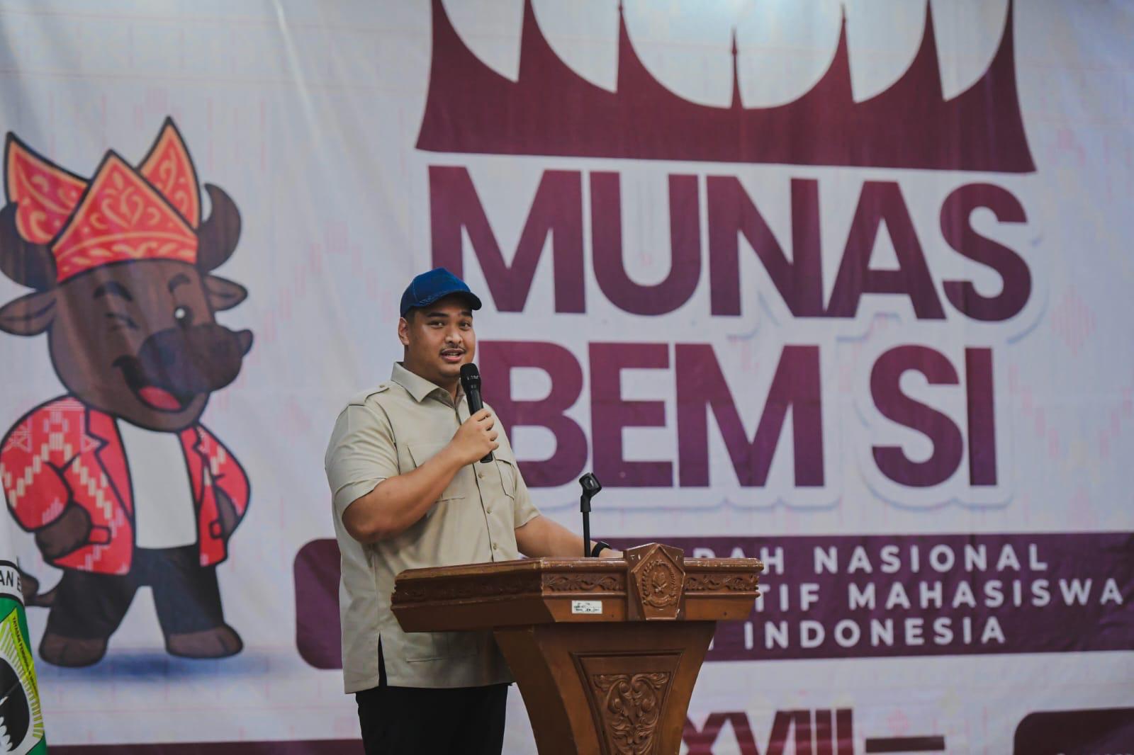 Menteri Pemuda dan Olahraga Republik Indonesia, Dito Ariotedjo, secara resmi membuka Musyawarah Nasional Badan Eksekutif Mahasiswa Seluruh Indonesia (BEM SI) Kerakyatan Ke-XVIII yang berlangsung di Aula Asrama Haji, Kota Padang, Sumatera Barat.
