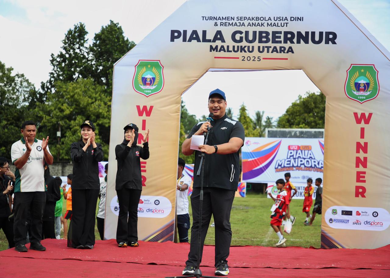 Menpora dengan didampingi Gubernur Malut Sherly Tjoanda Laos memukul tifa tanda dibukanya rangkaian Piala Menpora U12 dan U15 tahun 2025. Momen tersebut juga dipadukan dengan penutupan turnamen sepak bola Piala Gubernur Malut 2025 yang mempertandingkan beberapa kategori usia.