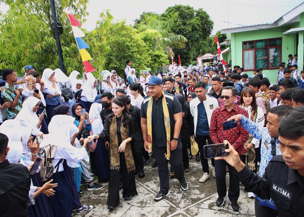 Menteri Pemuda dan Olahraga (Menpora) RI Dito Ariotedjo meninjau SMA Negeri 5 Ternate, Jalan Batu Angus, Dufa Dufa, Ternate Utara, Kota Ternate, Maluku Utara (Malut) Kamis (17/7) siang. Tarian Soya-Soya khas Malut yang diperagakan para siswa menyambut kedatangan Menpora sejak di depan gerbang sekolah.