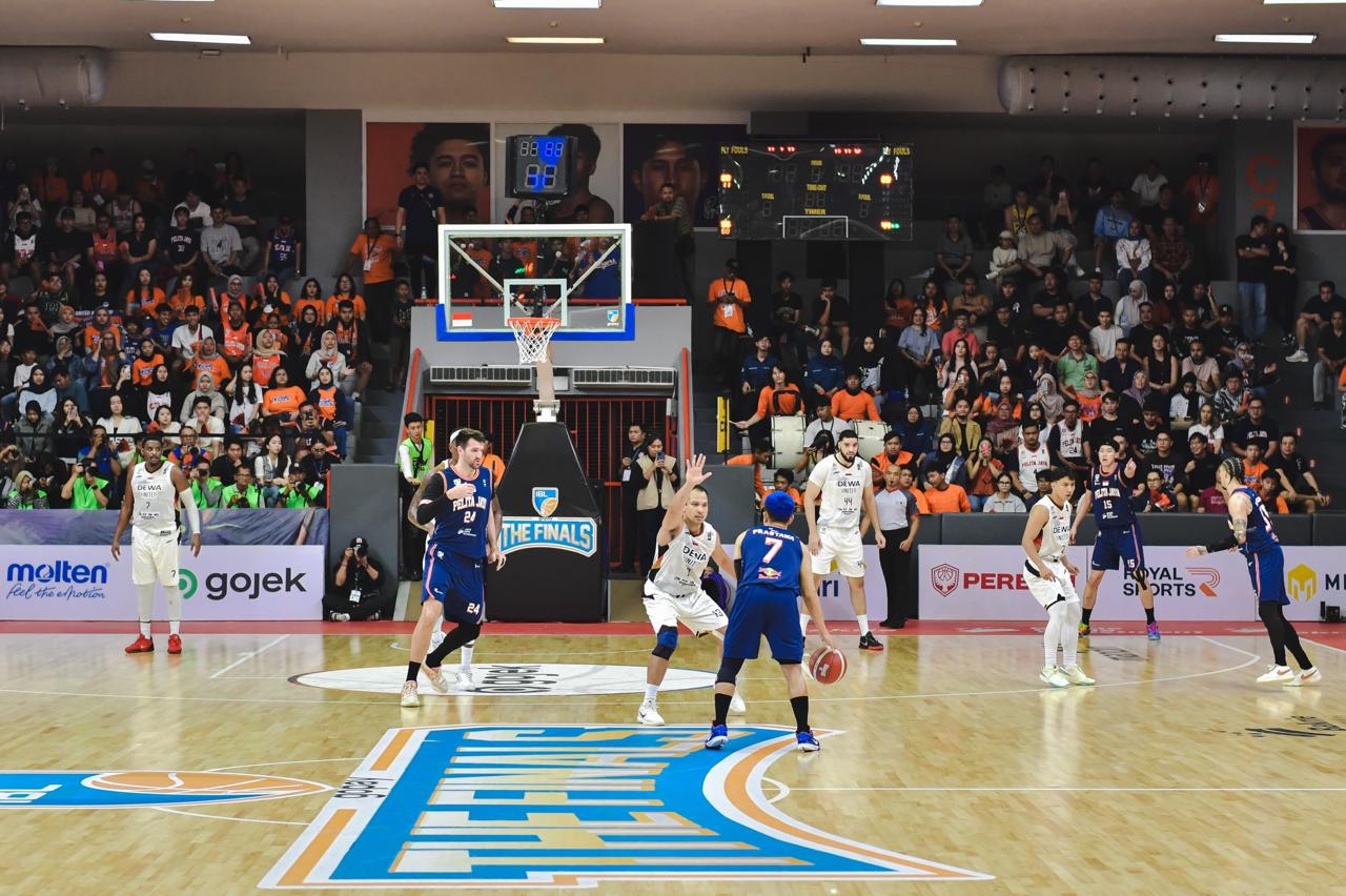 Secara keseluruhan, Dewa United menang dengan skor 2-1. Pada pertandingan final pertama, Dewa United menelan kekalahan 77-94 di kandang mereka, Dewa United Arena, Tangerang. Kemudian, di laga kedua Dewa United menang 80-75 di GOR Soemantri Brodjonegoro.