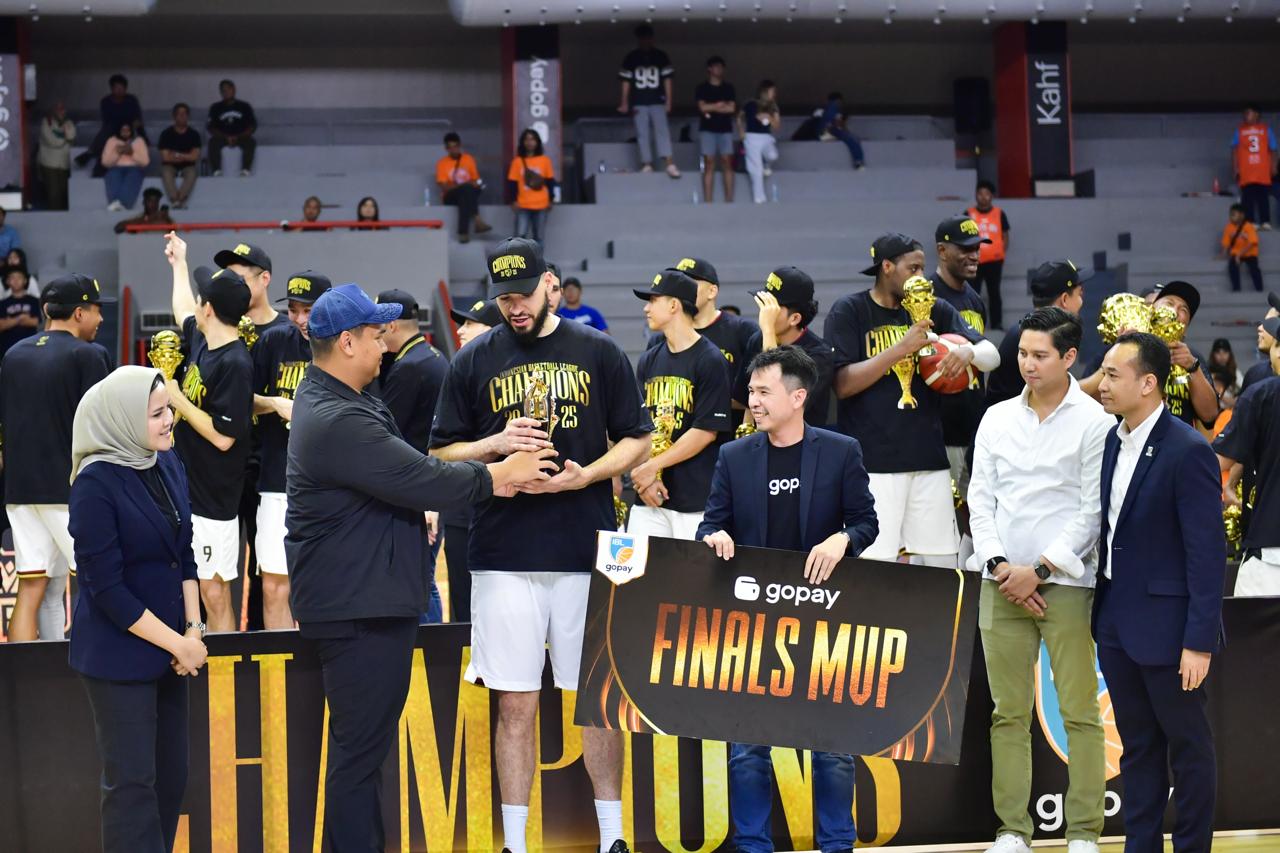 Menpora Dito menyaksikan sejarah baru dengan keberhasilan Dewa United Banten menjadi juara setelah berhasil mengalahkan Pelita Jaya Jakarta dengan skor tipis 74-73.