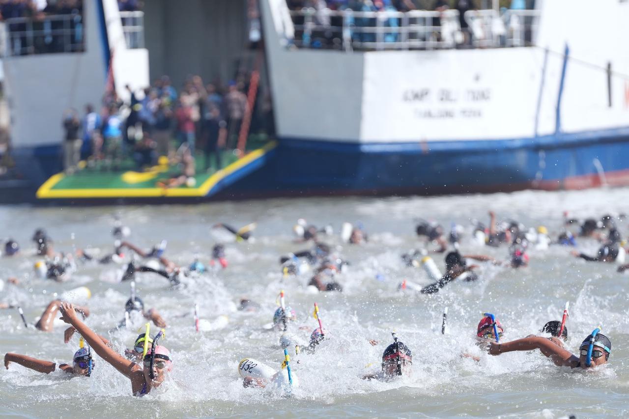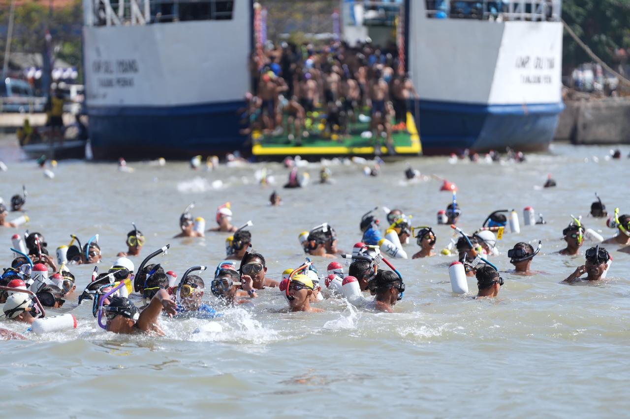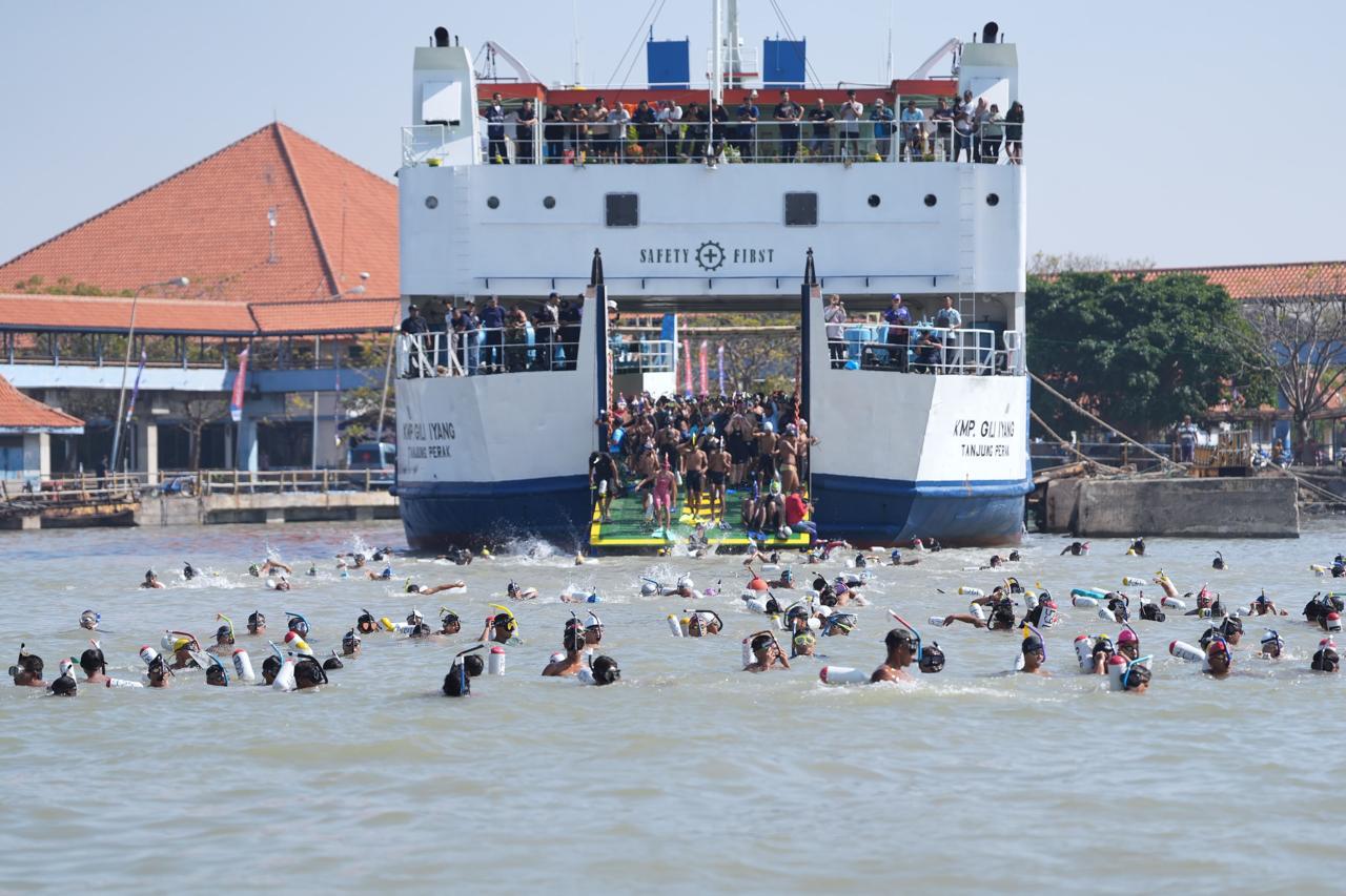 Sekitar 900 perenang dari TNI, Polri dan masyarakat umum menyeberangi Selat Madura. Seluruh perenang tersebut, menempuh jarak renang 4,6 kilo meter dengan start di Dermaga Kamal Madura, dan Finish di Dermaga Ujung Koarmada II.