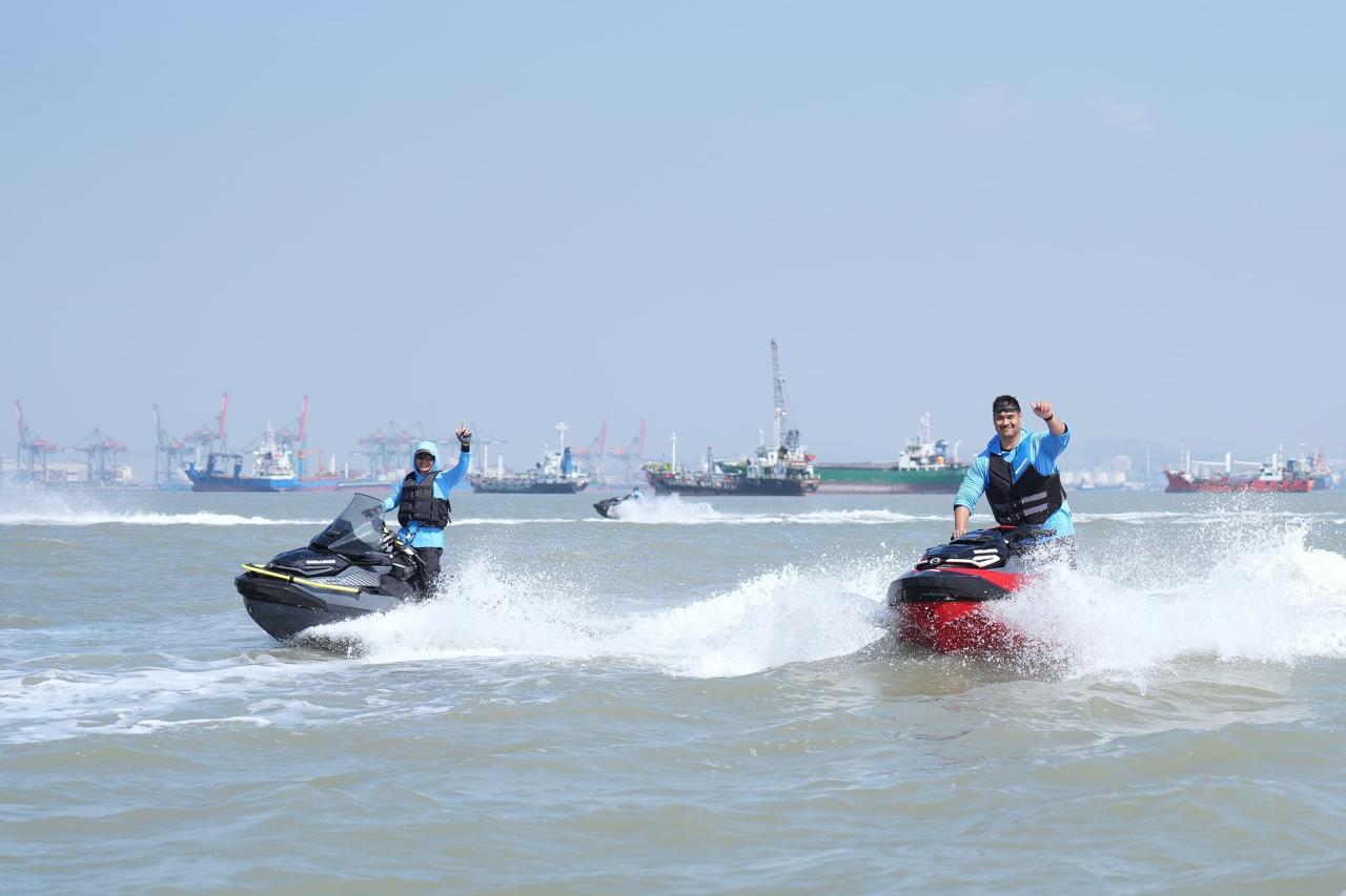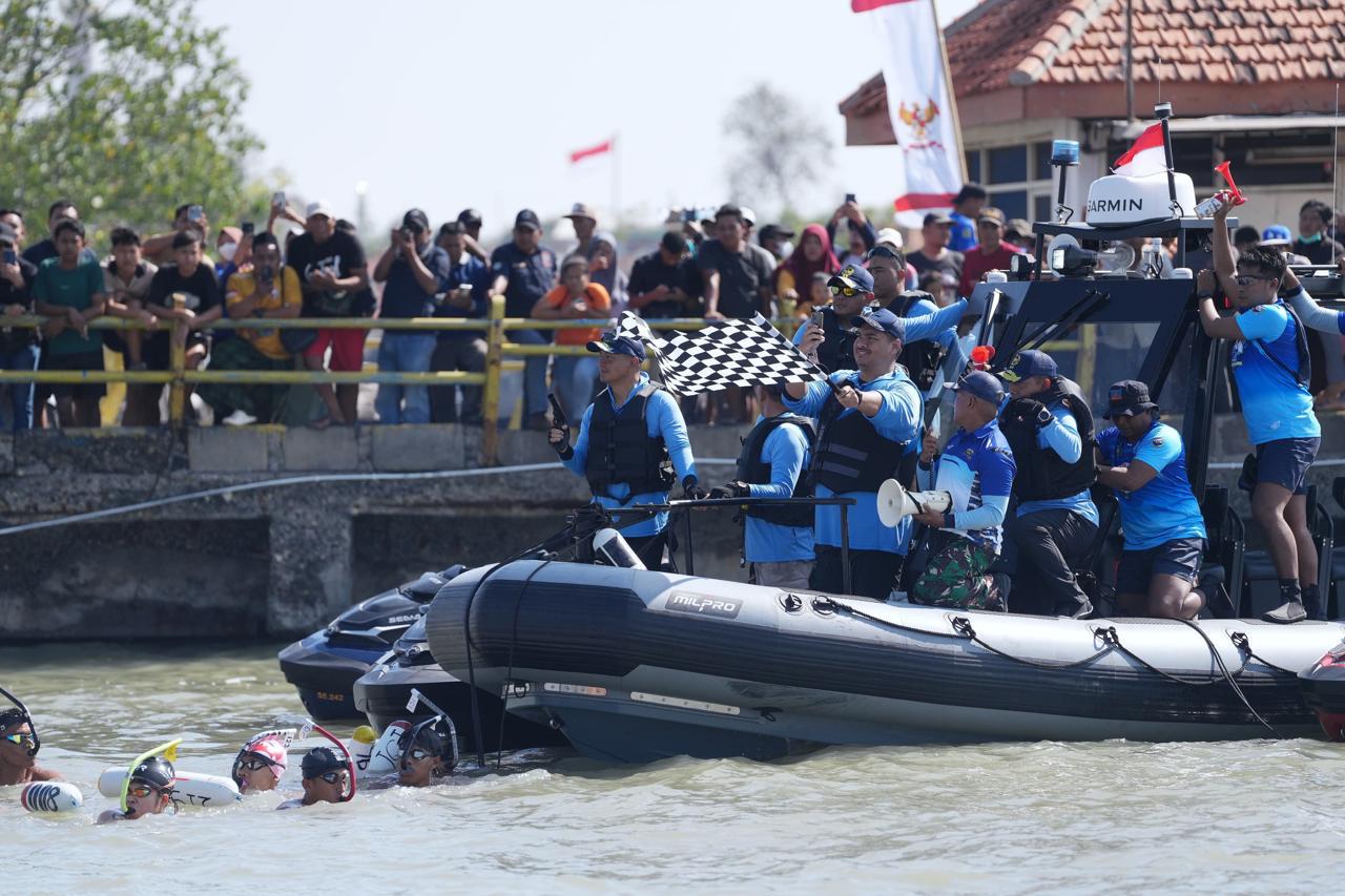 Menteri Pemuda dan Olahraga Republik Indonesia (Menpora RI) Dito Ariotedjo bersama Wakil Kepala Staff Angkatan Laut (Wakasal) Laksamana Madya TNI Erwin S. Aldedharma hari Sabtu (9/8) pagi melepas Fin Swimming Piala Kasal 2025, di Dermaga Kamal Madura.