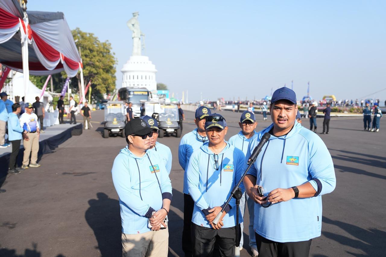 Sebelum melakukan pelepasan, Menpora Dito pada sesi konferensi pers menyampaikan dukungan terhadap kegiatan olahraga yang dilaksanakan sebagai peringatan Hari Ulang Tahun (HUT) ke-63 Komando Pasukan Katak (Kopaska).