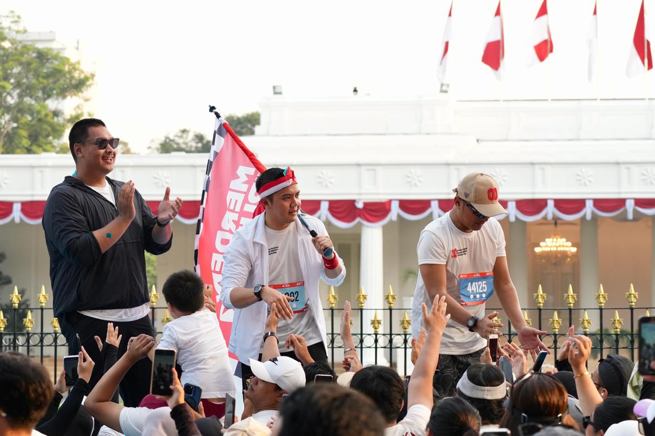 Menteri Pemuda dan Olahraga Republik Indonesia (Menpora RI) Dito Ariotedjo, bersama Menteri Sekretaris Negara Prasetyo Hadi, dan Seskab Teddy Indra Wijaya melepas ribuan peserta Merdeka Run 8.0K.