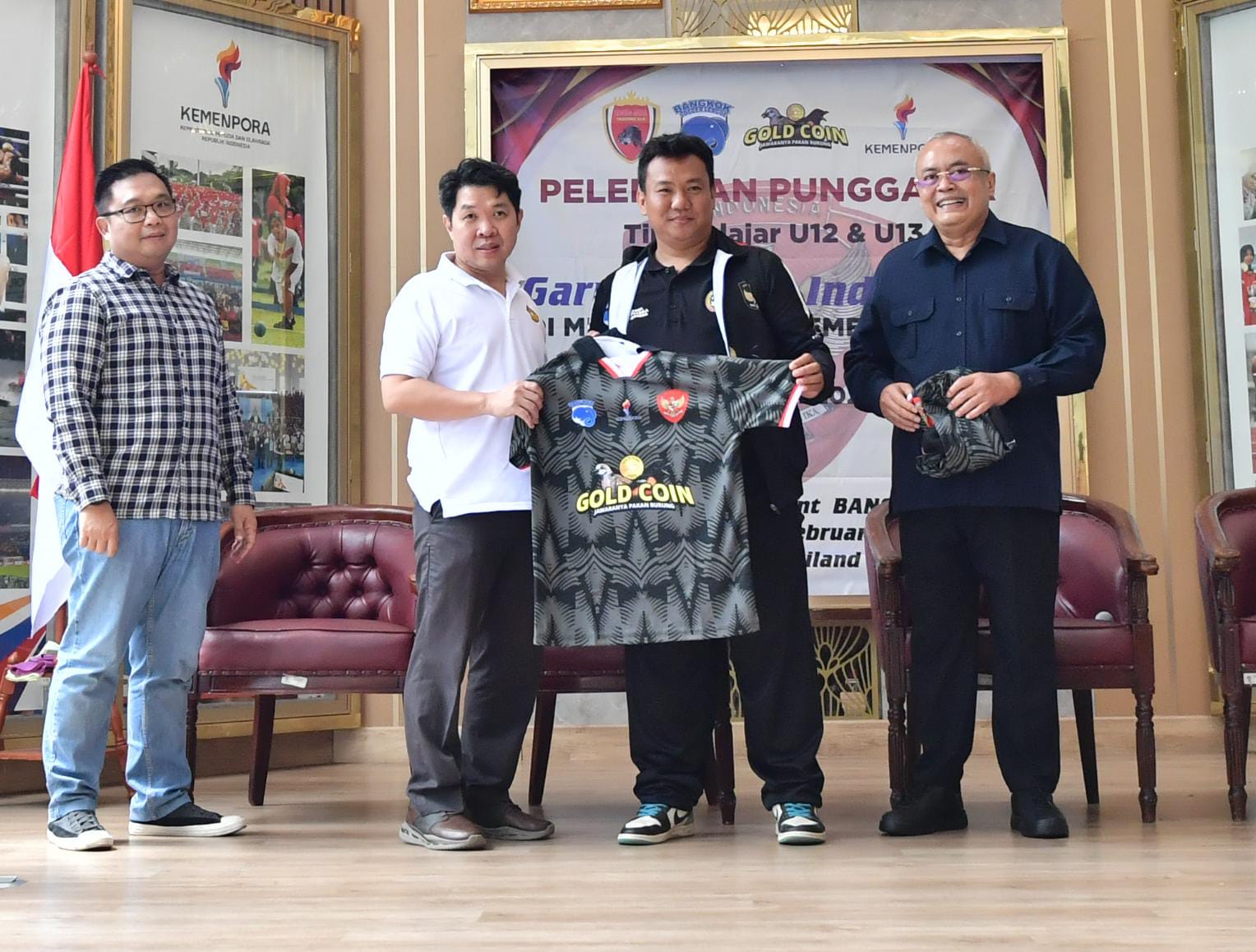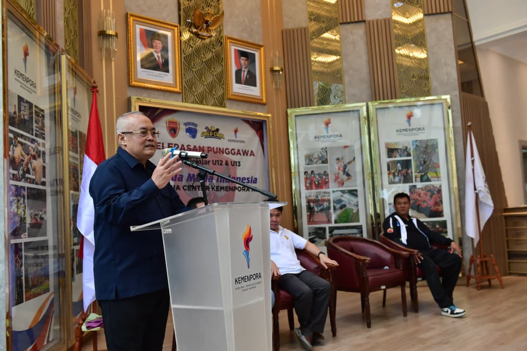 Sekretaris Menteri Pemuda dan Olahraga (Sesmenpora RI) Gunawan Suswantoro melepas Tim Pelajar Garuda Muda Indonesia untuk mengikuti ajang Bangkok International Youth Football Festival 2026, Senin, (2/2) di Media Center Kemenpora.