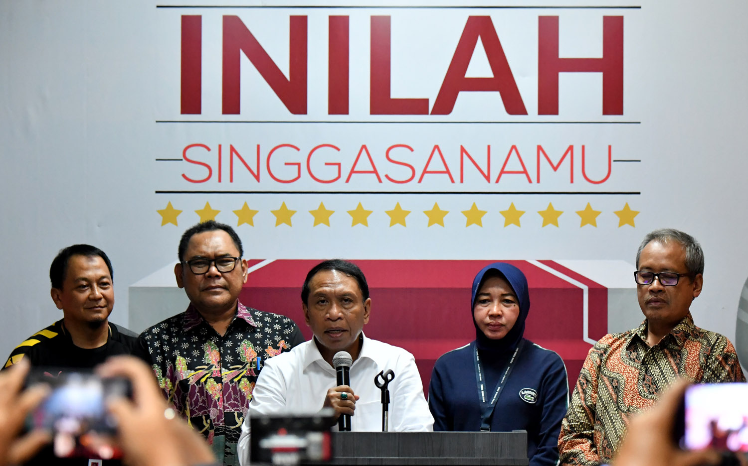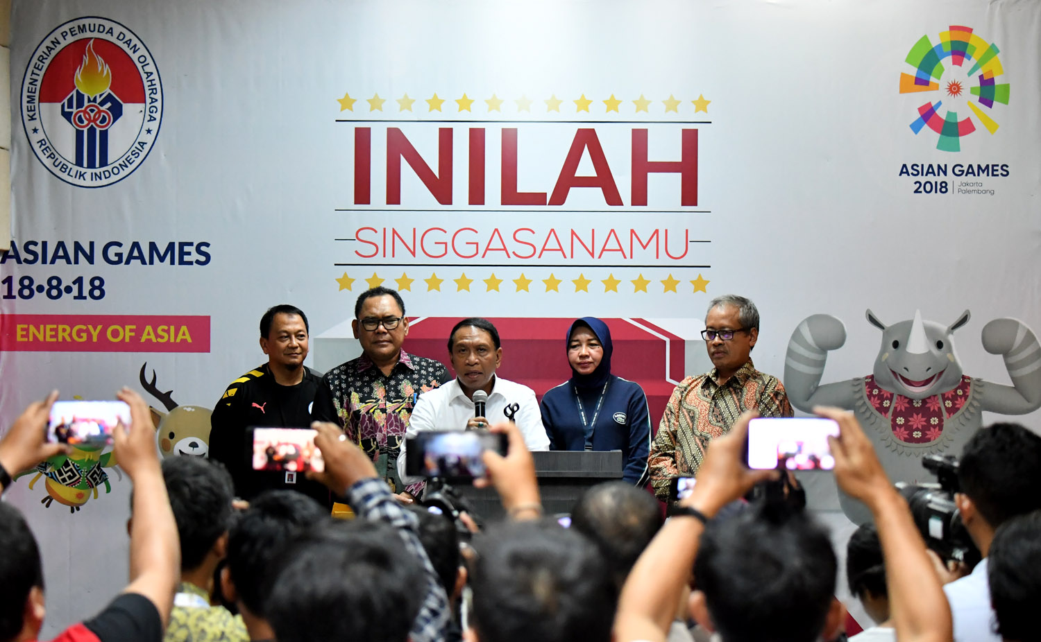 Menteri Pemuda dan Olahraga (Menpora) Zainudin Amali memberikan keterangan pers terkait penyelenggaraan Pekan Olahraga Tradisional Tingkat Nasional (Potradnas) VII 2019 di Media Centre Kemenpora, Jakarta Rabu (23/10). Potradnas ini akan diselenggarakan di Stadion Sultan Agung, Bantul, Yogyakarta pada 25-28 Oktober 2019 mendatang
