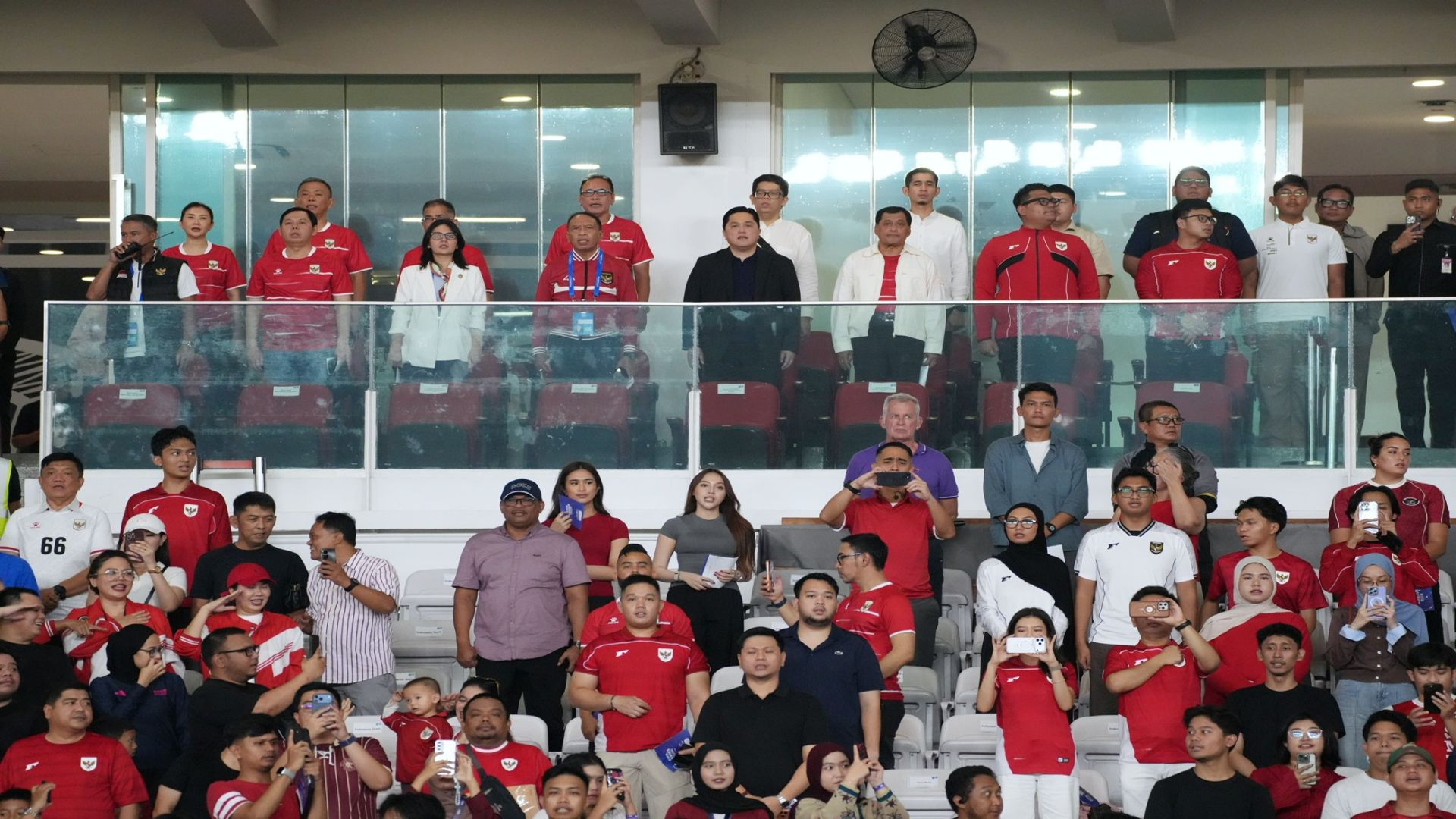 Menteri Pemuda dan Olahraga Republik Indonesia (Menpora RI), Erick Thohir, menyaksikan pertandingan Timnas Indonesia kontra Saints Kitts and Nevis di Stadion Utama Gelora Bung Karno, Jakarta, Jumat (27/3).